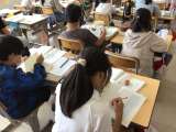 2年生の図工です。楽器を作っています。音を出すために、弾く、たたく、中にものを...