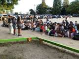 5年生の体育です。高跳びで自己記録がどこまで伸ばせるか、何度も挑戦しています。...