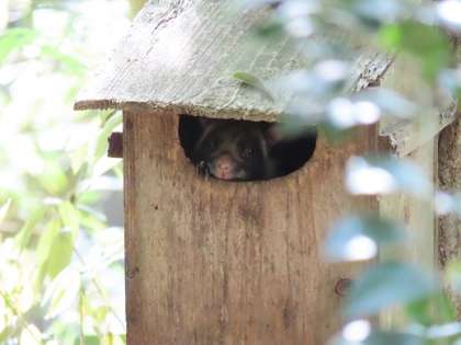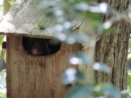 ヤマガラ学級の児童が「校長先生、学校の裏でムササビの巣箱を発見しました」と教えてくれました。とてもあいらしい顔が写真に写っています。