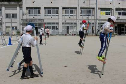 一輪車は猛練習で上達してきた人が多いのですが、竹馬の練習が不足している人も多いようでした。しかし、練習すると子どもたちの成長は本当に早いです。