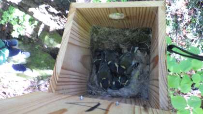 営巣調査を行いました。シジュウカラのヒナたちがすっかり成長して美しい模様が見えます。