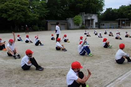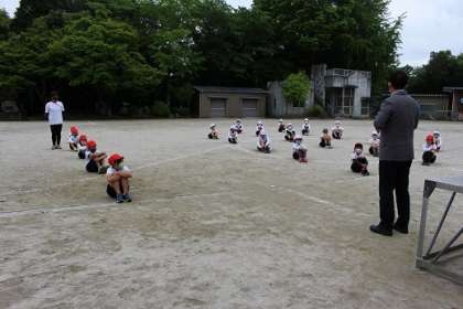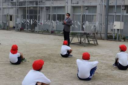 一輪車の練習の前に校長先生から、「新しいコロナウィルスは小学生にも感染するケースが増えている」ということや、「愛知県に緊急事態宣言が出て、運動会が延期になってしまった場合は、プラス思考で考えて、一輪車などの技術をさらに上達させていこう。」というお話がありました。