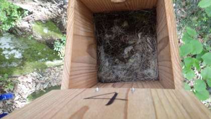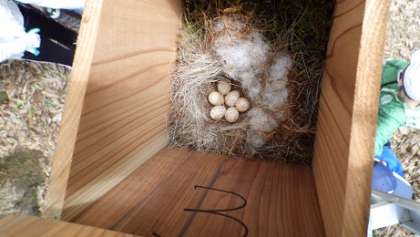 毎週木曜日に行う営巣調査ですが、明日の天気が心配だったので時間割を変更して営巣調査に出掛けました。多くの巣が巣立った後でした。昨日5年生が行った学習会の内容からすると、写真の卵があり白い毛がある巣がシジュウカラの巣で、既に巣立った後の苔がたくさんある巣がヤマガラの巣ということでしょうか。