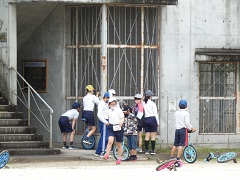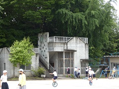5月4日ニ卵から孵化したヒヨコのたちもそろそろ1ヶ月が過ぎたのまで昼間は、バドピアで過ごすことにしました。子どもたちは、横のゲージの親の碁石チャボと何度も見比べていました。