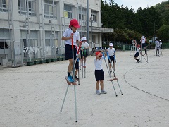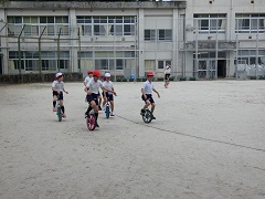 中学年の体育の授業の様子です。運動会が延期となりましたが、一輪車と竹馬については、短時間ではありますが、継続して練習しています。おかげで、すごく上達しています。(こんな形で延期になったことが、子どもたちのプラスになったら嬉しいですね)
