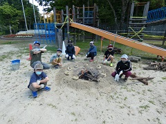 6年生は、4月30日の豊田市郷土資料館の出前授業で作った縄文土器を野焼きしました。