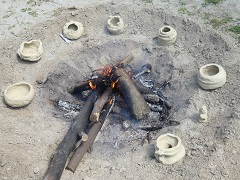 縄文時代の文化をより深く知るために、野焼のための薪も学校林から集めた物を使いました。