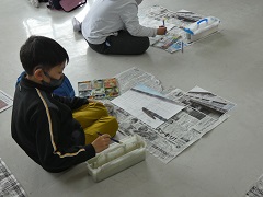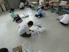 高学年は、図工の授業では、遠近法を使って小学校の校舎を丁寧に描いています。
