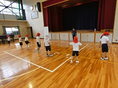 低学年 体育 表現リズム遊び 公開日 2021/06/02 更新日 2021/06/02 お知らせ リズムに合わせて、体のいろいろな部位を使って振り付けを考えて組み合わせます。子どもたちは、とても楽しそうに体を動かしています。