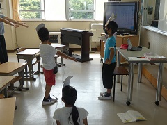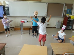 「名前を見てちょうだい。」の授業の後、1年生にお話の内容の楽しさを音読劇をして伝えようと猛練習していました。