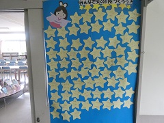 読書週間中に読んだ本の数だけ、図書室前の掲示物に※をはることができます。七夕まで天の川を※で埋めることができるでしょうか。