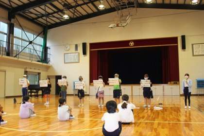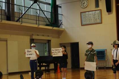今日のいきいき集会では、保健委員会の皆さんが熱中症予防についてまとめた寸劇をしてくれました。
