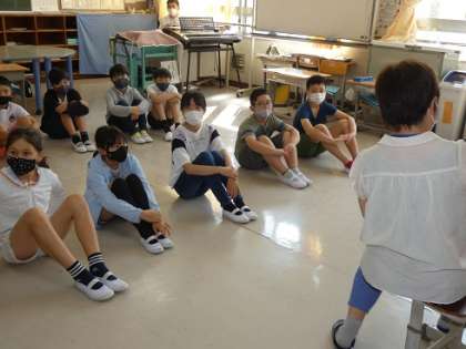 読み聞かせボランティアさんたちの朝の読み聞かせがありました。子どもたちは、目をキラキラさせて絵本を見ながらお話に耳を傾けていました。先週で読書週間は終わりましたが、読書の習慣を継続していきたいですね。