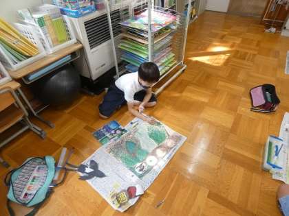 4年生の図工の時間では、描いている愛鳥週間ポスターが完成した子もでてきたようです。既にできあがった作品を見てみるとリアルに描かれた野鳥に鮮やかな背景が組み合わされてとてもきれいです。