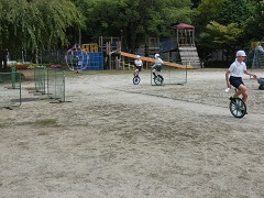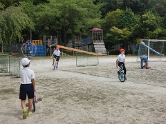 高学年 体育 公開日 2021/09/13 更新日 2021/09/13 お知らせ 高学年のウォーミングアップは、一輪車でトラック10周です。さすが、高学年ですね。一輪車でトラック10周を走っても余裕があるようです。