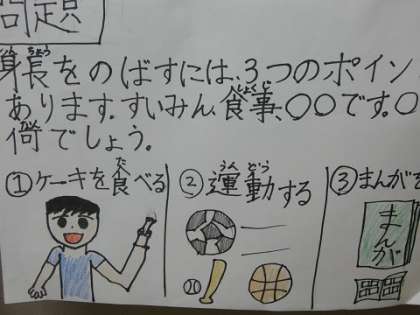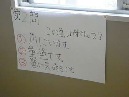 委員会の活動も大切にしています。写真は、保健室前の保健委員会からの「健康クイズ」の掲示と、愛鳥委員会からの「愛鳥検定に向けて意欲を高めるためのクイズ」の掲示です。こういった掲示を見ていると、一人ひとりの工夫があっておもしろいですね。