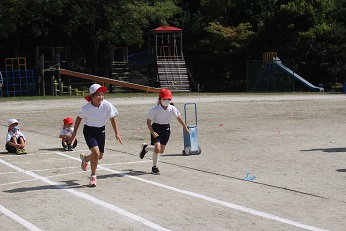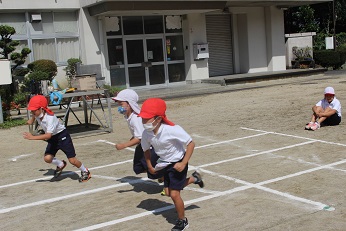 コロナ感染対策のため今年の運動会は、全校児童での種目をなくす方向で進めています。低学年は、赤白リレーにかわって、徒競走です。子どもたちは、「徒競走」と聞いて、最初「徒競走」の意味がはわからない様子でしたが、競走ということがわかると闘志満々で燃えています。
