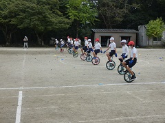 運動会まであと1週間です。10月になり、緊急事態宣言も開けました。写真の中・高学年のGOGO一輪車の練習も本格化してきました。