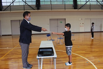 校長先生からは、先日行われた運動会に向けた取り組みを褒めてもらいました。また、本日、配付される通知表についてのお話がありました。