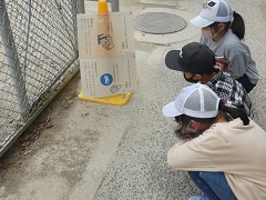 3年生の理科の授業で「校庭の秋を探しに行こう」と昇降口を出たとたん、「かまきりとハリガネムシ」に遭遇しました。初めて見る寄生虫のハリガネムシに興味津々の様子です。しばらく、その場にとどまり、ずっとハリガネムシを観察していました。3年生の子たちは秋を見つけることができたのでしょうか。