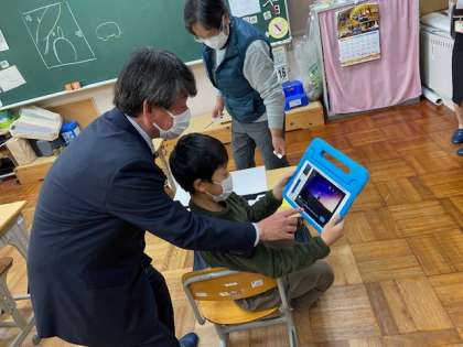 11月18日 教育長さんが訪問してくれました 公開日 2021/11/18 更新日 2021/11/18 お知らせ 滝脇小学校の子どもたちの様子を見に山本教育長さんが来校し、子どもたちの様子を近くで見てくださいました。子どもたちと一緒に活動してくださるような場面もあり、子どもたちもとても楽しそうでした。