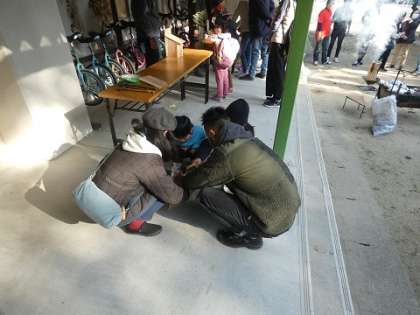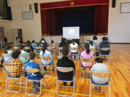 体育館で夏に行われた愛知県野生生物保護実績大会(愛知県知事賞受賞)の発表の様子をビデオで見たり、シジュウカラやヤマガラが入れる穴の大きさの巣箱を作ったりしました。たくさんの保護者の方たちが準備と運営に協力していただきました。