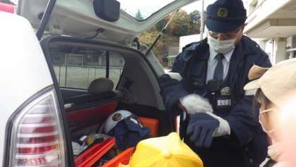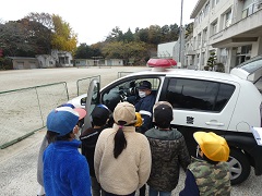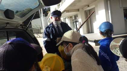 林添駐在所の警察官の方が来てくださいました。いろいろな質問に対して親切に答えてくださいました。どうやら、子どもたちのあこがれの職業になってしまった子もいるようです。