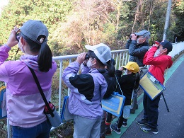 耳を澄まし地鳴を聞き、野鳥の姿を探して、双眼鏡にその姿をおさめて観察します。