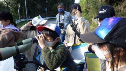 写真のように出発前にコースごとに自己紹介と見つけたい鳥を確認します。講師の先生は、何とか見つけたい鳥の姿を見せてくれるように努力してくれます。見つけるコツを教えてくれたり、口笛で鳥を呼んでくれたりしてくれました。