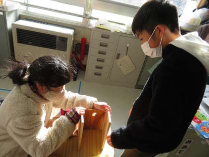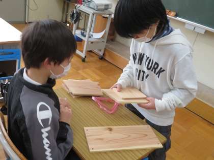 今日は来年の営巣調査のために巣箱を作りました。高学年の児童が中学年の児童に親切に作り方を教えました。できあがった巣箱は、来年の1月に野鳥の森に設置します。この巣箱にシジュウカラやヤマガラが巣を作ってくれるとよいですね。