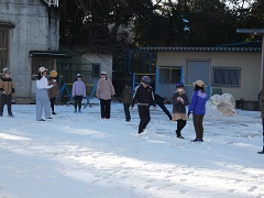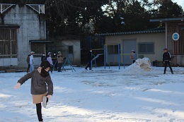 心配された雪も止み、快晴の中、子どもたちが元気に登校してきました。始業前、子どもたちは雪が積もった運動場で元気に遊んでいます。