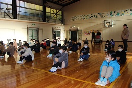校長先生からは、年始という節目に当たり、「目標を新たにもったり、確認したりしてそれに向けてできることを工夫して努力していきましょう。」というお話や「コロナ対策を継続してしっかり取り組んでいきましょう。」「卒業まで学校生活をみんなで充実したものにしていきましょう。」という3つのお話がありました。