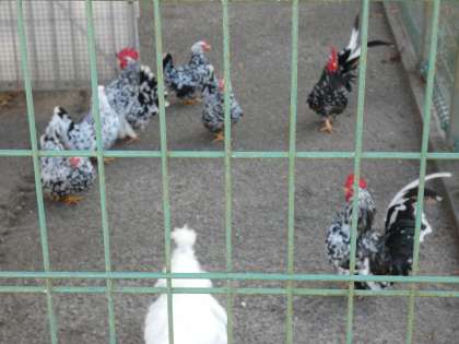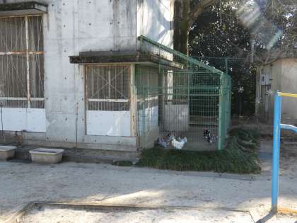 バードピアには、冬の間は、寒さ対策でプラ板の壁が取り付けられていますが、まだまだ寒そうです。しかし、今年は、ご覧のようにたくさんの碁石チャボがいますので去年の今頃(3羽しかいなかった)より随分と温かそうに見えます。