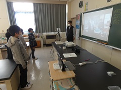 6年生は、中金小学校の6年生2名と合同で理科の授業を行いました。インターネットのズームを使って滝脇小学校の理科室と中金小学校の理科室をつなげて、理科の「私たちの生活と電気」という単元の勉強を一緒に行いました。