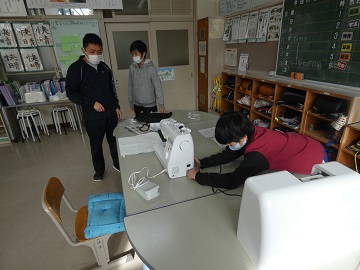 写真は、愛鳥活動の個人研究の総まとめとして「愛鳥リーフレット」をパソコンを使って作成している様子とミシンを使って繊細な作業をしてい様子です。