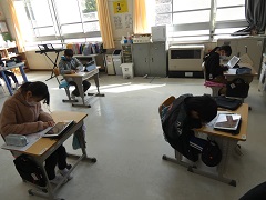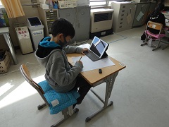 高学年の図工の授業では、好きな一文字を選んでデザインを考えて描いています。ユニークなデザインがいっぱいでした。完成が楽しみです。