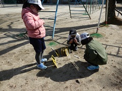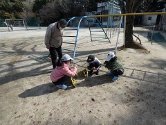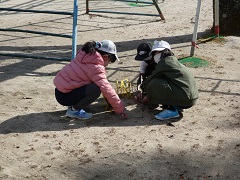 3年生は、理科の授業で光の進み方の勉強をしています。運動場に出て、光を集めて温度をあげようとしています。