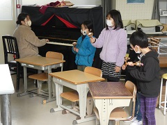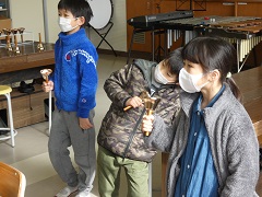 低学年 音楽の授業 公開日 2022/02/08 更新日 2022/02/08 お知らせ 音楽の授業で自由な時間ができたので、みんなでハンドベルを使って「キラキラ星」の練習をしました。私が通りかかると「演奏するので聞いて下さい」とニコニコしながら話しかけてきました。15分くらいの即興演奏にしてはとても上手な発表でした。