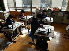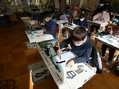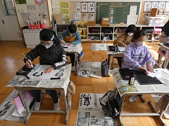 書写の授業は、3年生以上では、年間30時間程度行います。4年生の子どもたちは落ち着いた雰囲気で集中して取り組んでいます。どの子もとても上手です。