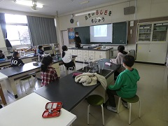 4年生の理科の授業では、樹氷の動画を見ていました。水の三体の勉強をしていました。タイムリーな映像で子どもたちは興味を持って映像を見ていました。