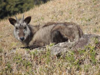 探鳥会では、小学校では見れない野鳥や珍しい動物も見られます。写真は、どんな野鳥でしょうか。ニホンカモシカに遭遇したグループもあるようです。