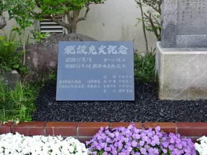昨年度撤去されたモニュメント「施設充実記念碑」を新しく作り直し、地域の方のお力をお借りし、玄関横の植木のあるところに設置しました。プールや校舎、体育館が竣工された年月やご尽力いただいた方のお名前が刻まれています。学校にお越しの方は、是非ご覧ください。