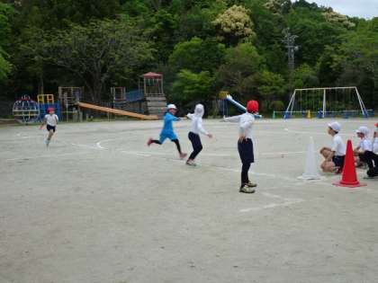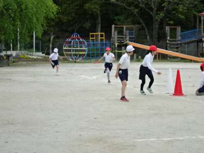 3〜6年生で、赤白リレーの練習をしました。本番さながらの走りに、応援にも力が入りました。