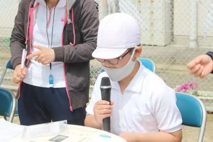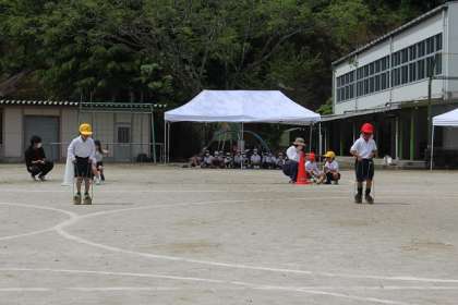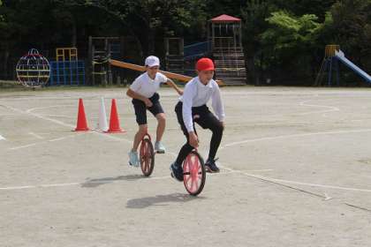 運動会の予行練習を行いました。赤白グランプリレースなど、競技中に音楽や実況のアナウンスが入り、盛り上がりました。
