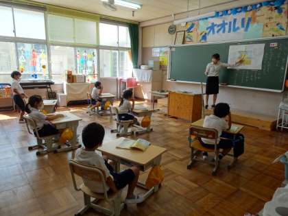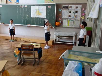 1時間目に、国語の学習で、「とんこととん」の音楽劇をお家の人に見てもらいました。語りの子はネクタイやリボンをつけて、ネズミやモグラ役の子はお面をつけて、登場人物になり切って発表しました。最後に大きな拍手をもらって、みんな嬉しそうでした。