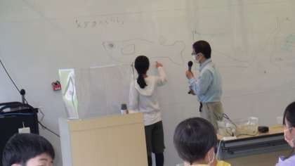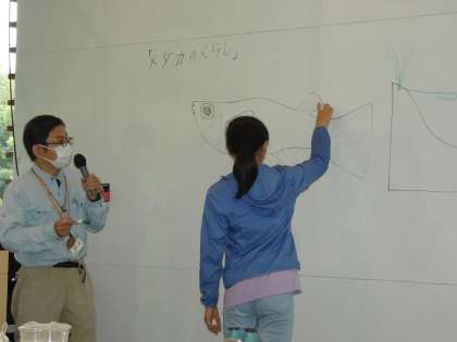メダカのオスとメスはどこが違うのかな。みんなで考えました。