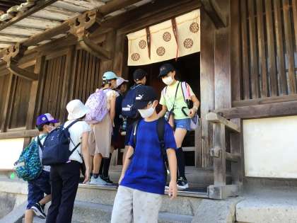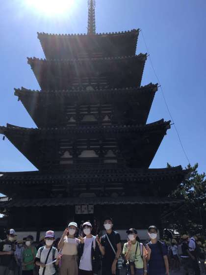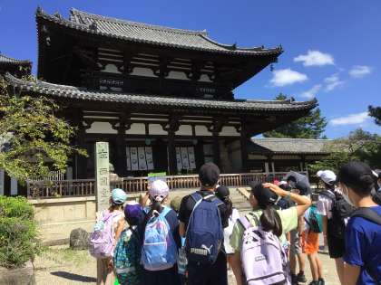 法隆寺を見学しました。ガイドさんの話を一生懸命聞いて、法隆寺のつくりなどについて学習しました。