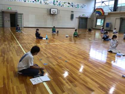 5・6年生が、体育館で音楽の学習をしました。リコーダーの練習では、低い音に苦戦していましたが、コツをつかんで低いドの音がきれいに出ると、とてもうれしそうでした。