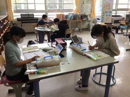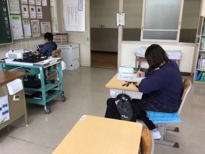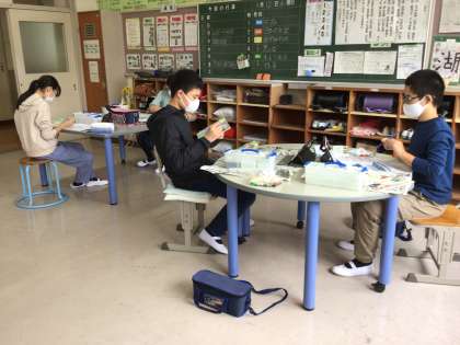 6年 修学旅行の絵 公開日 2022/10/12 更新日 2022/10/12 各学年から 6年生が修学旅行の思い出の絵を描いていました。学習用タブレットで建物などの写真を探して、それをもとに下書きをしました。細かいところまでよく見て描かれていて、さすが6年生です。色も丁寧に塗っていて、できあがりが楽しみです。