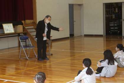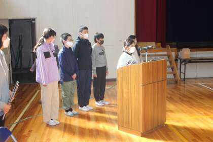 授業参観の後、講師の方をお招きし、「親子で楽しく体操して、ニコニコ元気になろう」をテーマに、学校保健委員会を行いました。5・6年の保健委員会の子どもたちが、会を進行しました。